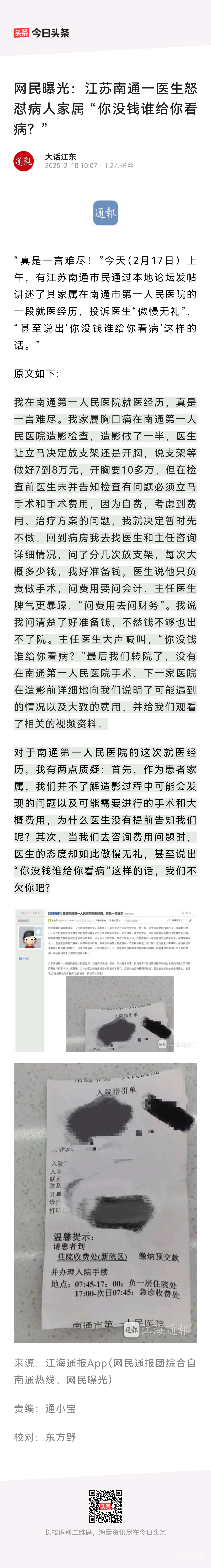 [百姓民声] 你没钱,谁给你看病?南通市第一人民医院不想再装了。 |