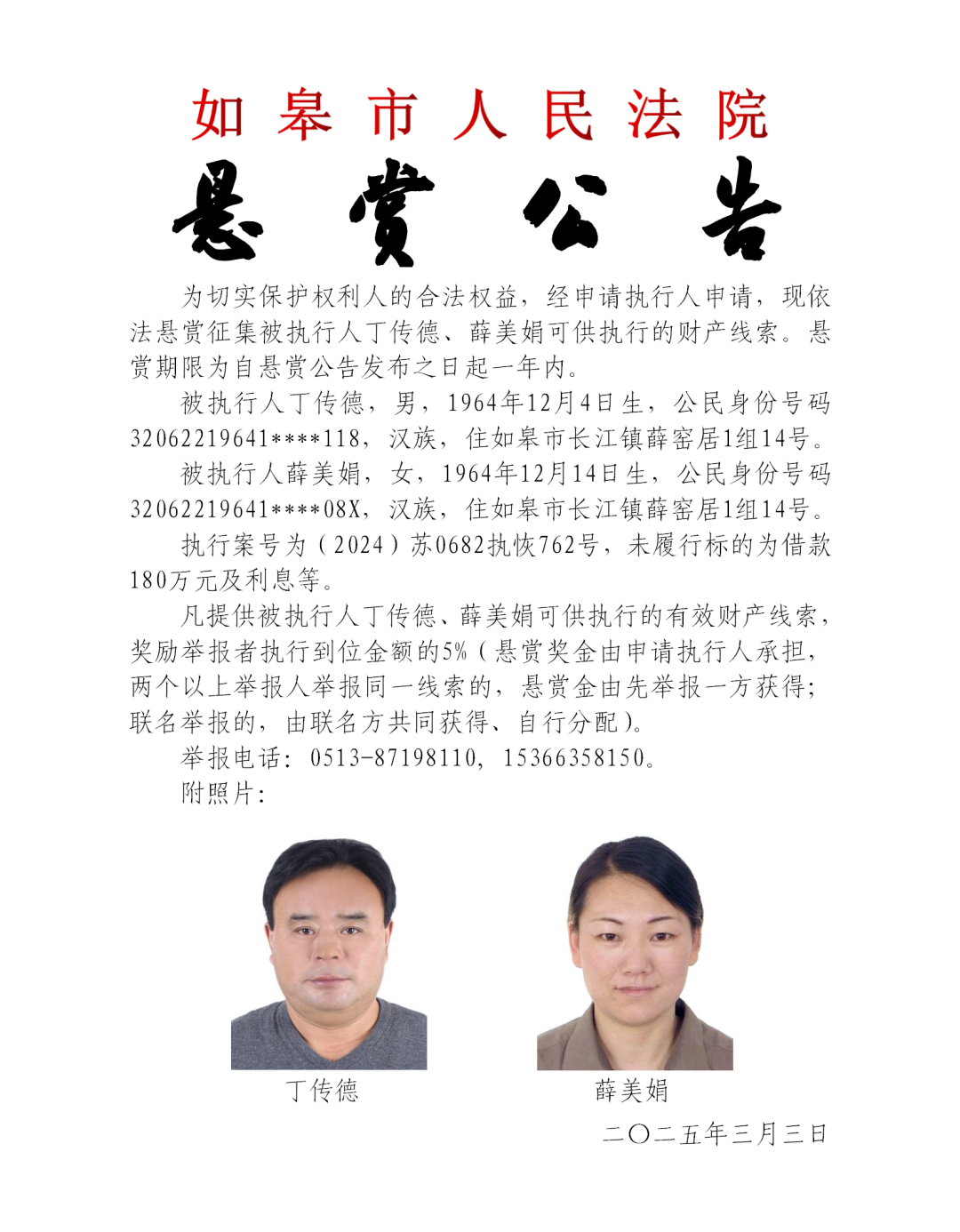 [新闻快讯] 看到这两个如皋人请立即举报,悬赏金9万! |