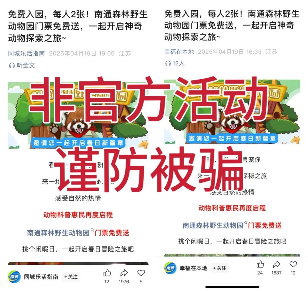[新闻快讯] “免费送票”?南通森林野生动物园紧急回应 |