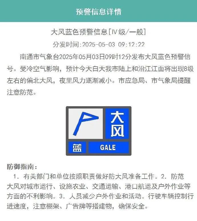 [新闻快讯] 双预警!南通气象刚刚发布 |