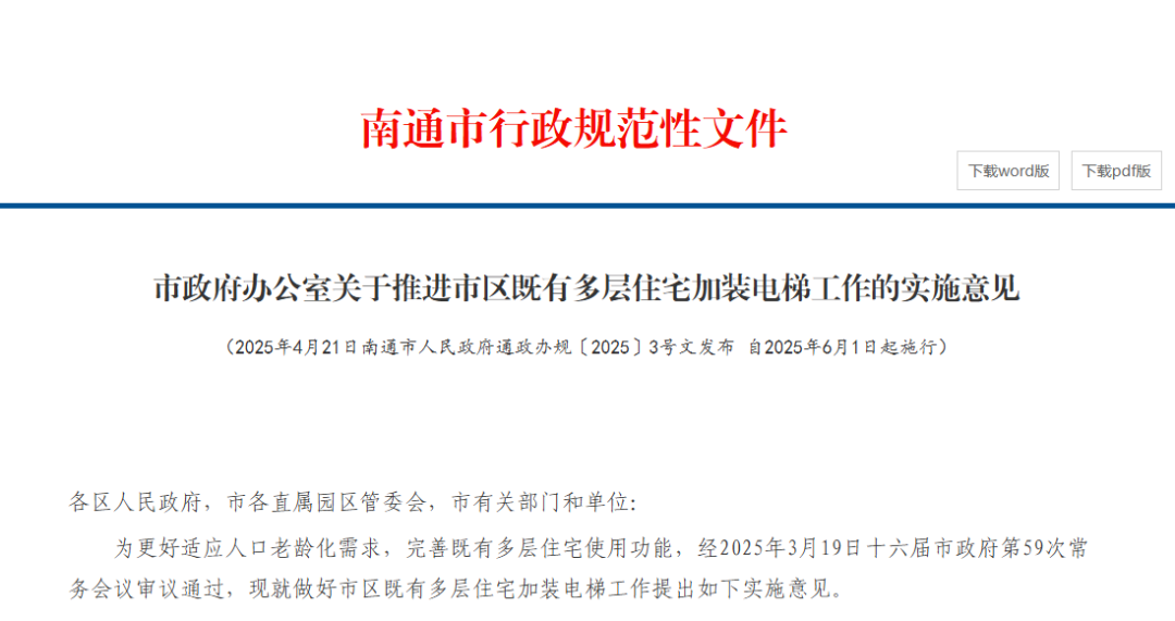 《意见》提出,加装电梯实行“一户申请即启动”机制,只要本单元有业主提出加装意愿,社区(村)居委会即可组织征询其他业主意见。《意见》还明确业主协商机制和异议处理规则,为社区调解矛盾提供了政策依据。根据最新细则,崇川区、南通经济技术开发区、苏锡通园区的加装电梯项目,将根据最高停靠楼层给予18万~25万元/台补贴,为鼓励规模化加装,新政还设立了整栋奖励机制。整栋楼(两个单元及以上)同时申请加装的,在所有单元完成电梯安装并取得使用登记后,每台电梯可按照标准补贴的1.5倍系数获得奖励。加装电梯“三分建、七分管”,实施意见创新性地构建了全周期管理体系,确保电梯长期安全运行。