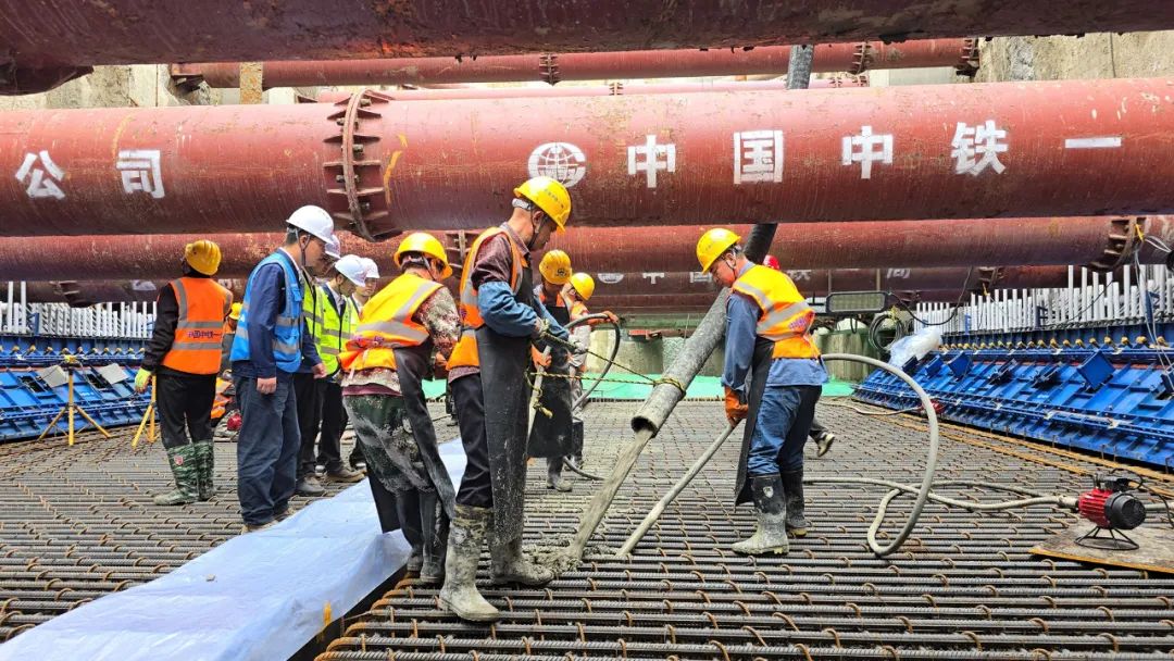 沿着狭窄的施工通道下行 越往深处,机器的轰鸣声越清晰 地下18米处 满眼皆是钢筋水泥的世界 脚下是密密麻麻捆扎好的钢筋 仿佛一张巨大的钢铁网络铺展在眼前 混凝土浇筑的声音此起彼伏 工人们各司其职 国内少有的综合交通枢纽之一