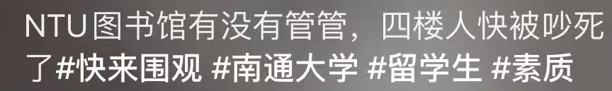 [新闻快讯] 南通大学一学生爆料:留学生聚集图书馆,声音过大 |