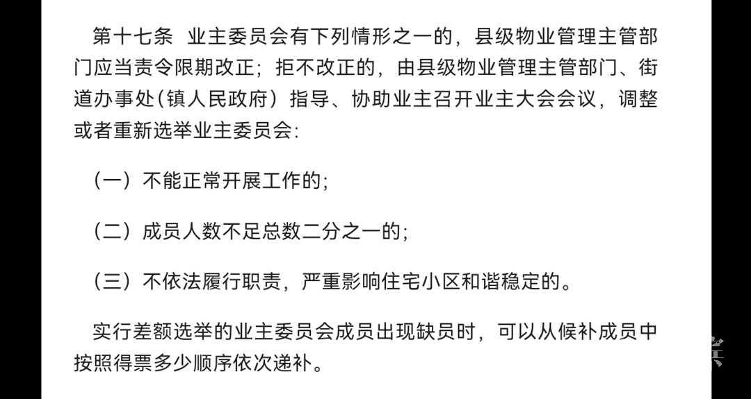 原因2:即使弘阳上城第二届业委会委员的辞职申请得到同意,形成终止其资格的决定,但街道、社区也应当依据法规要求,先对业委会责令整改,拒不改正后,街道也仅能行使指导、协助,对于缺额情况展开讨论与决议,通过调整或重新选举委员的方式,使业委会正常运行。但街道一未对业委会下达责令整改,二未指导召开业主大会,此为履职缺位。