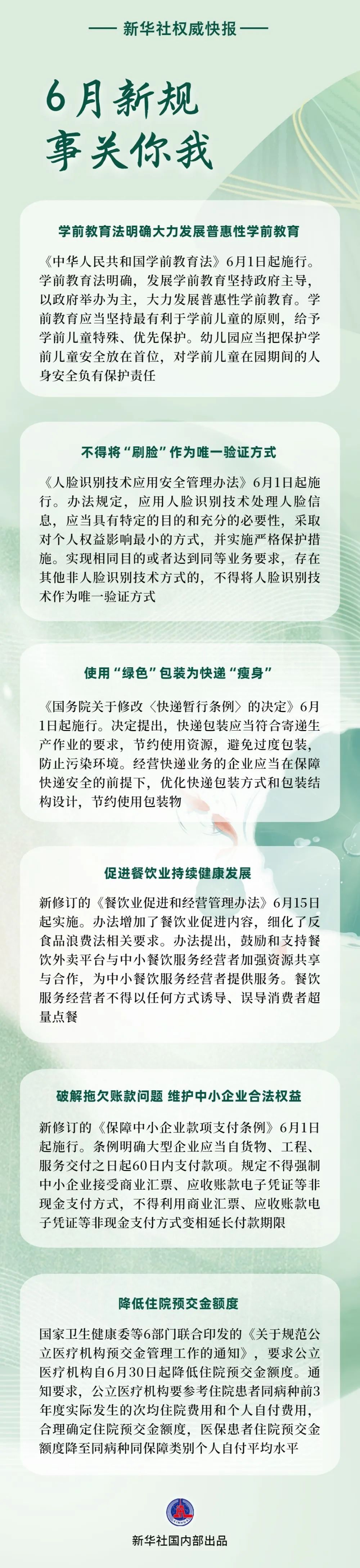事关学前教育、“刷脸”识别、快递包装……6月起,一批事关你我的新规将施行。一起来看,哪条你最关注?