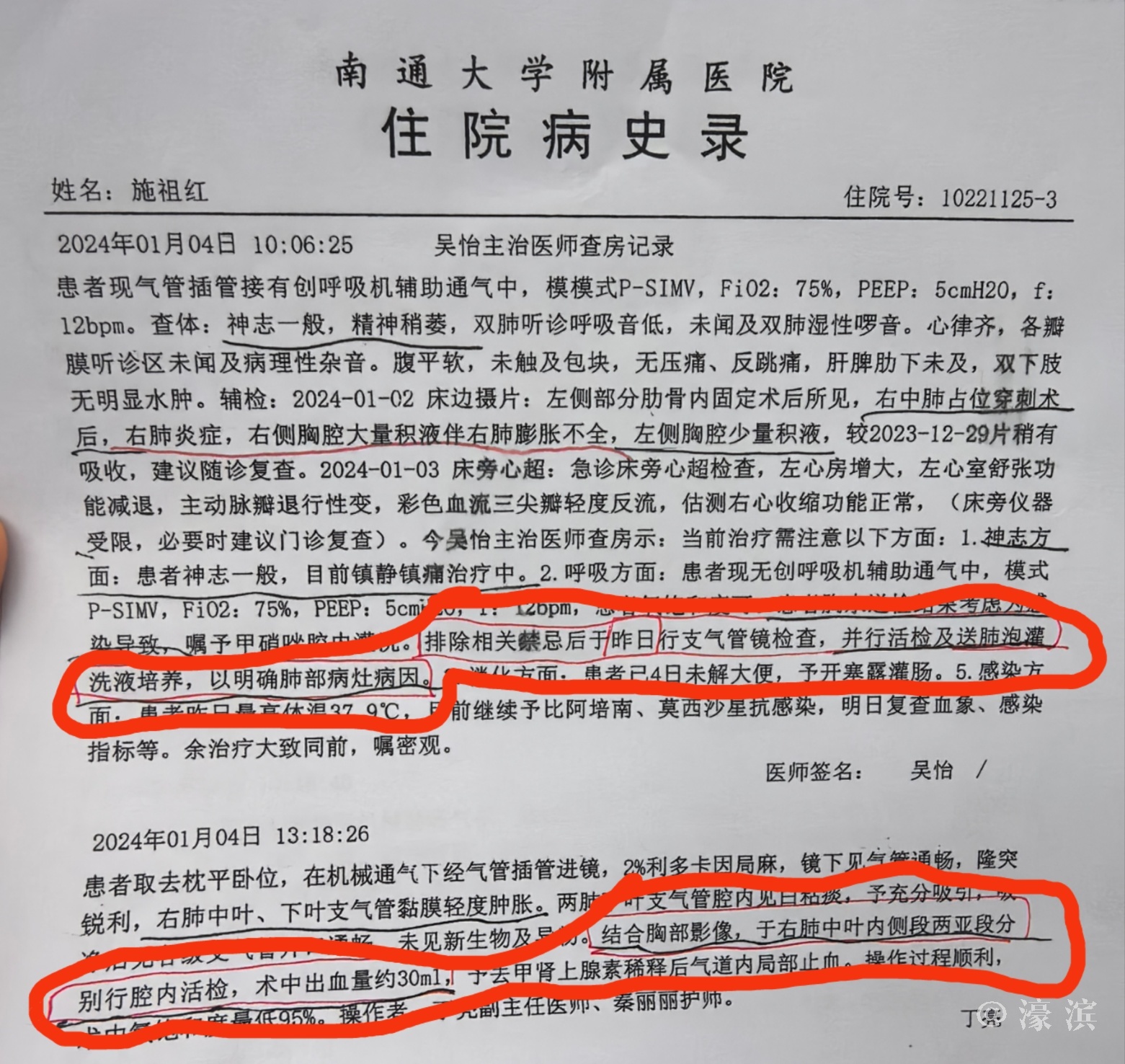 南通大学附属医院呼吸科重症监护室偷扎肺组织