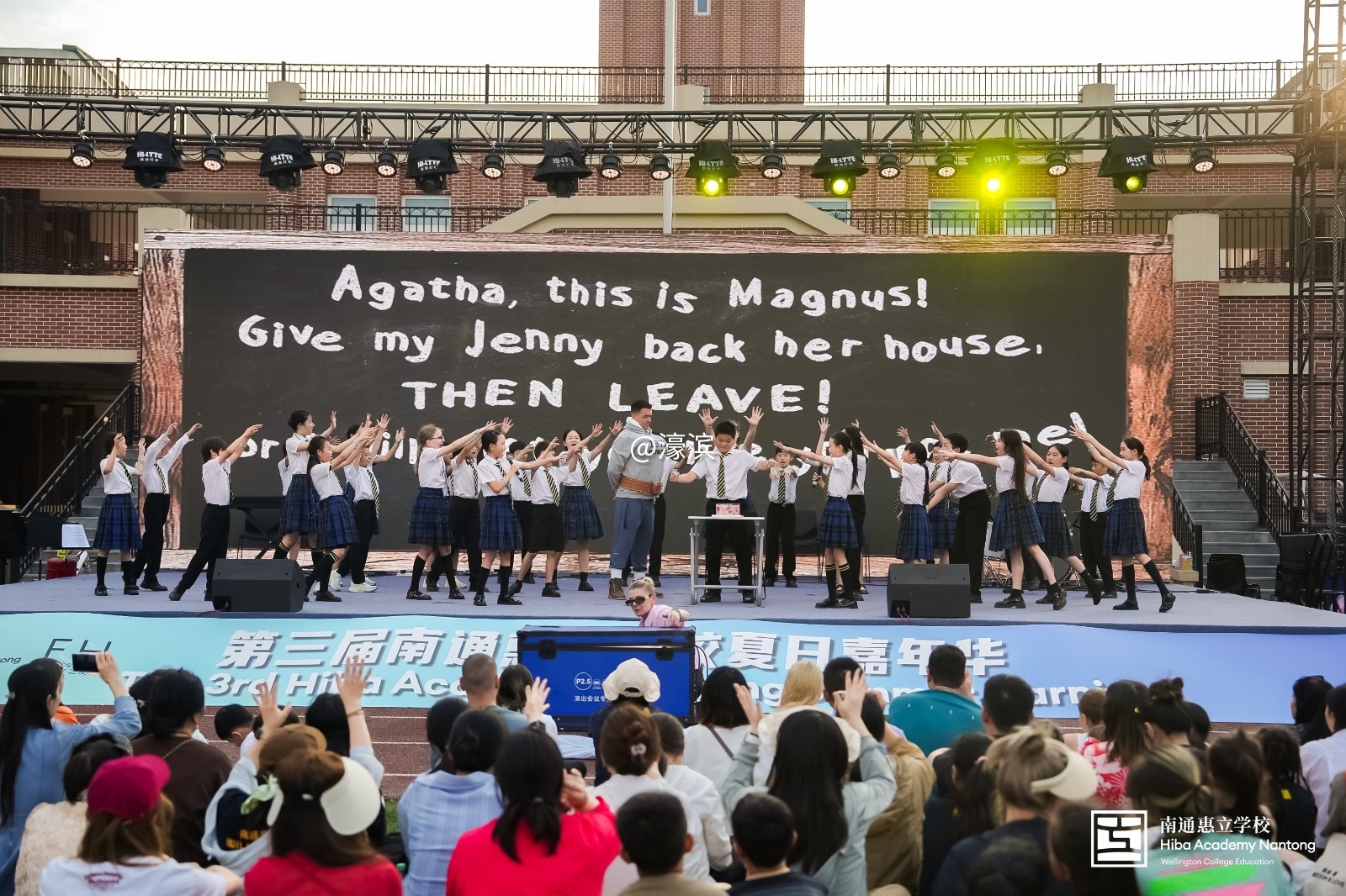 艺术绽放:师生共创的舞台盛宴 随着暮色降临,惠立学子的艺术才华在聚光灯下熠熠生辉。师生同台的开场舞以极具张力的编排点燃全场,随后,经典音乐剧的华彩片段轮番上演:《妈妈咪呀!》的动感旋律、《欢乐满人间》的童真唱段、《查理与巧克力工厂》的奇幻音符、《马达加斯加》的狂野节奏以及《玛蒂尔达》的励志歌声,让观众沉浸其中。 惠立弦乐团以古典与现代的完美融合展现精湛技艺,学生乐队用张扬的个性诠释流行音乐,教师乐队的惊喜亮相更是将现场气氛推向高潮。
