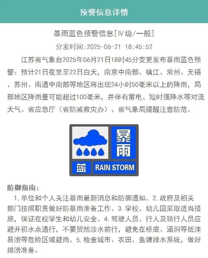 [新闻快讯] 暴雨蓝色预警!影响南通 |