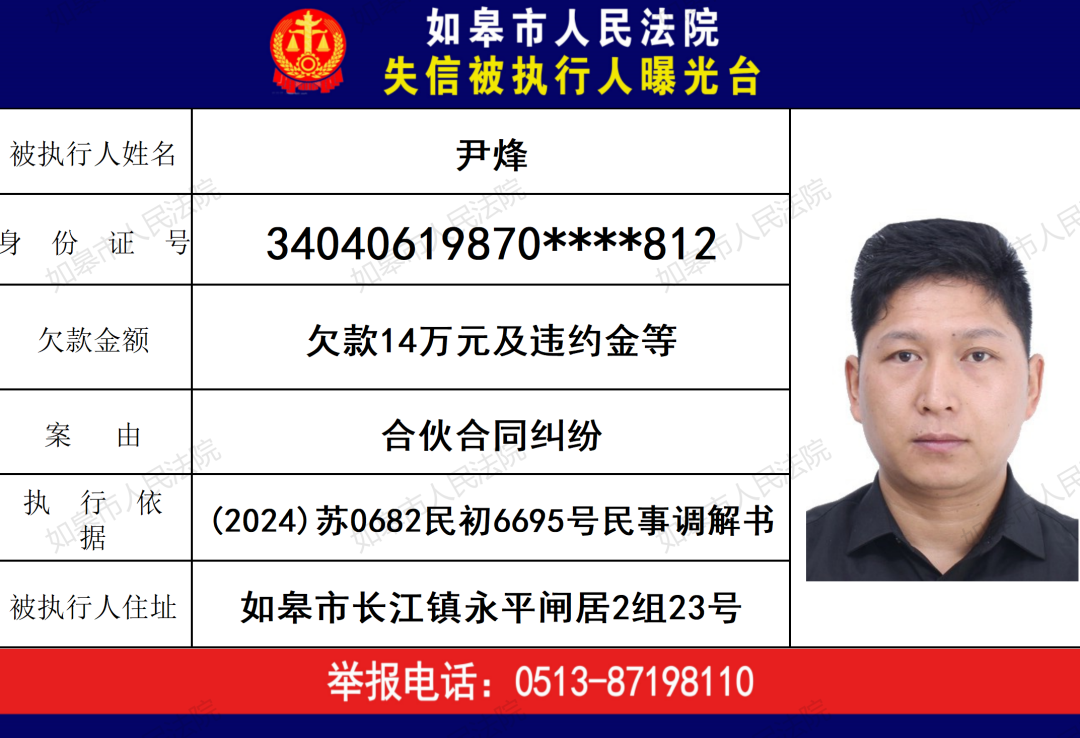 [雉水如城] 如皋再曝光徐*、张*武、周*等12名失信被执行人员 |