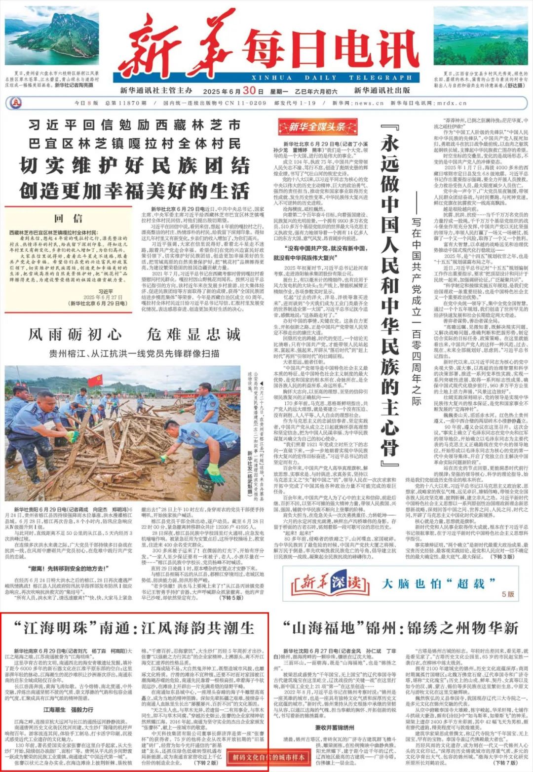 长江浩荡奔流,黄海飞涛如歌。古今熔铸、南北贯通、中外交融,淬炼出南通坚韧不拔的气质、崇文厚德的气韵和包容会通的气度,汇聚成具有江海气派的精神图谱。