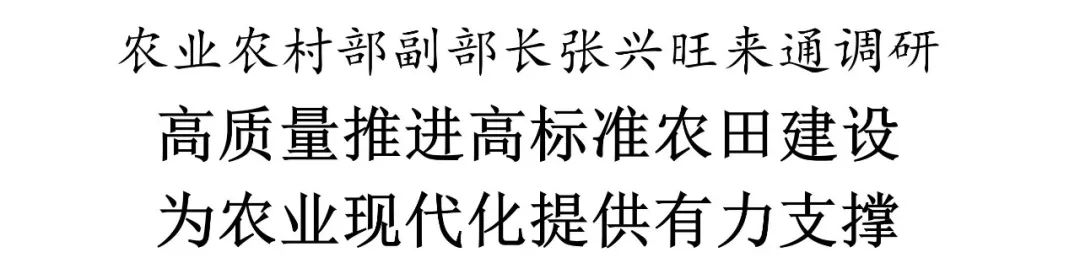 7月2日,农业农村部副部长张兴旺来通出席全国农田建设现场会并调研高标准农田建设、土壤普查等工作。市委书记吴新明,市委副书记、政法委书记沈雷参加相关活动。