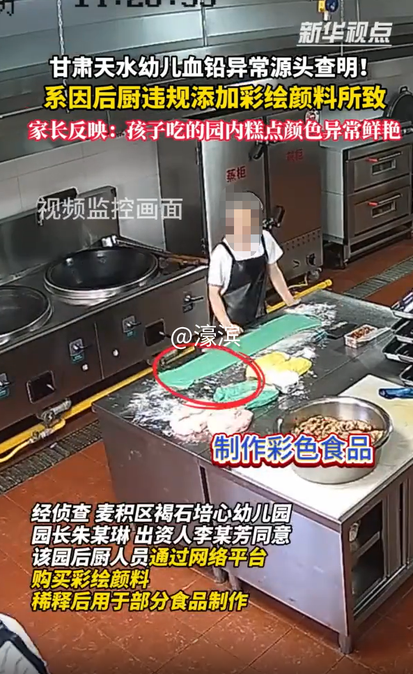 [新闻快讯] 血铅异常幼儿园后厨监控曝光!为扩大生源增加收益,网购彩绘颜料制作面点! |