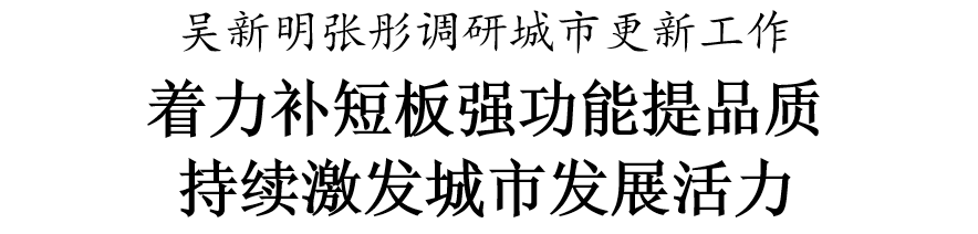 今天(7月14日)下午,市委书记吴新明带队调研城市更新工作,强调要牢固树立人民城市理念,注重规划引领,以系统思维统筹推进城市更新各项任务,着力补短板、强功能、提品质,持续激发城市发展活力,不断提升人民群众幸福指数。市委副书记、市长张彤参加调研。