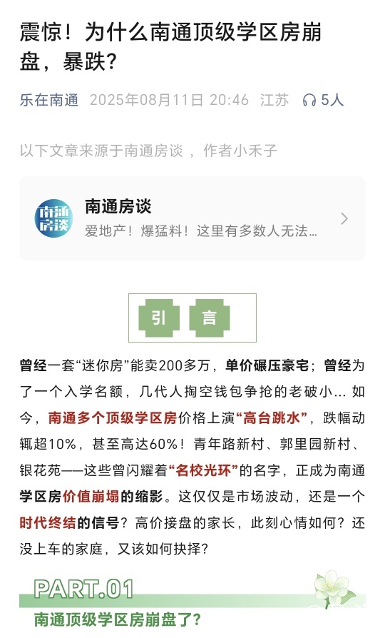 [焦点爆料] 关于学区房暴跌的消息,开始在本地微信自媒体公众号传播 |