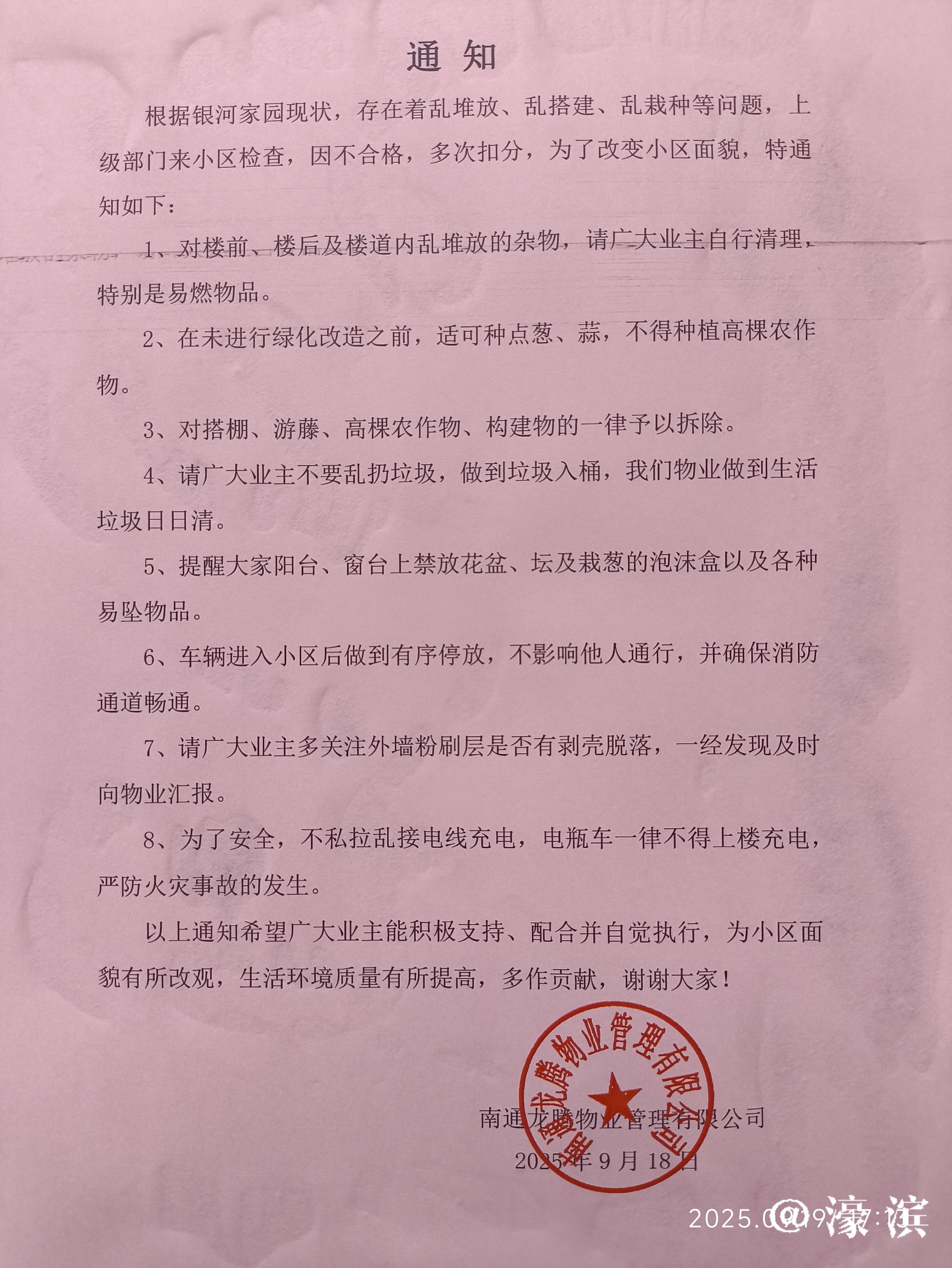 [焦点爆料] 南通龙腾物业有限公司的《通知》 |