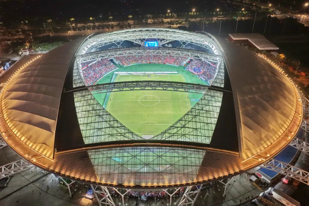 南通体育会展中心体育场看台上 球迷们炽热的激情 将赛场化作一片沸腾的海洋
