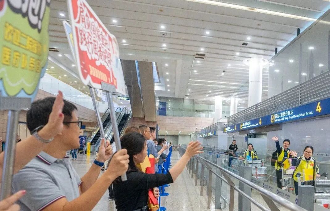 “我们回来啦!”今天(26日)上午10点20分,在上海浦东机场1号航站楼出站口,随着出站的人流,16名身着鲜明黄色外套、胸前绣有国旗的援外医疗队员向前来接机的“亲人”们挥手致意。 历时一年,跨越万里,第20期中国(江苏)援圭亚那医疗队在圆满完成援外医疗任务后顺利回国,南通市卫生健康委和派出单位代表手捧鲜花到站迎接,向凯旋的医疗队员致敬。
