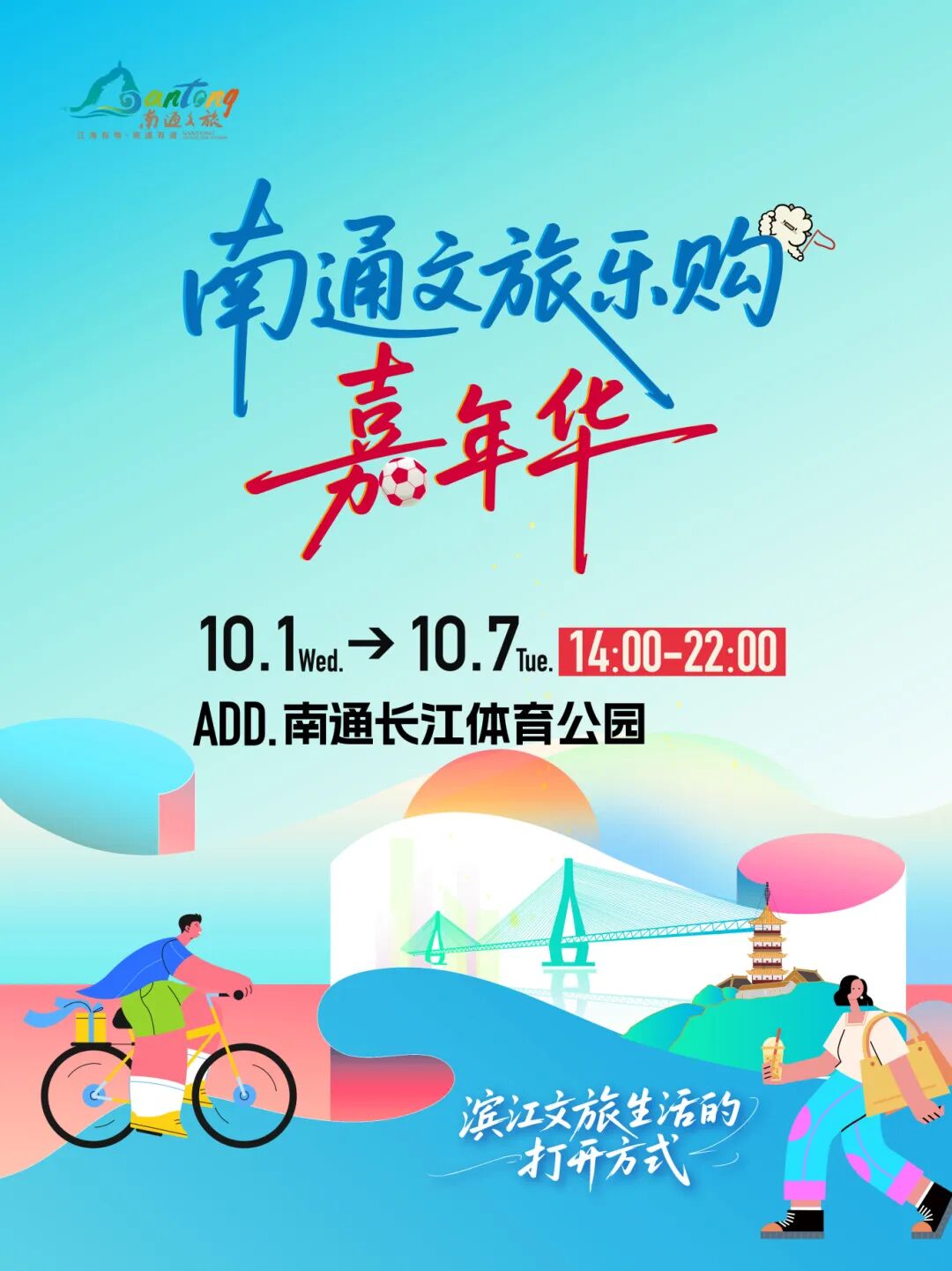 作为“滨江之链·恋在南通”金秋文旅促消费系列活动的重头戏,2025南通文旅乐购嘉年华由中共南通市委宣传部、南通市文化广电和旅游局、南通市商务局、南通市体育局、南通市卫生健康委员会、南通城市建设集团、崇川区人民政府、南通市旅游协会联合主办,活动将从10月1日持续到7日,全面引燃南通国庆中秋假期文旅消费市场。 开幕式将于今晚7点开始,将发布“滨江之链·恋在南通”金秋文旅促消费系列活动、官宣“我最喜欢的‘苏超’文创产品”评选结果等。开幕式上的最大看点为千架无人机秀,将在长江畔营造出浓厚的节日氛围。 此次文旅乐购嘉年华选址南通长江体育公园这一“开园即出圈”的运动休闲与社交打卡热门地,现场设置文旅场景展示区、城市美学生活区、户外露营休闲区等8大展区,汇集全市各县(市、区)精品文旅资源和100余家品牌商户,覆盖“吃住行游购娱”全领域,创新打造多元素、多业态、多主题的地标级文商体旅融合消费场景。 7天沉浸式体验 8大主题主题展区 6项特色活动 等你来参与! ↓↓↓ 嘉年华开幕式将于10月1日晚举办。国庆期间,“风从海上来”上海精品节目展演、致敬经典粤语金曲晚会、“红色传承·江海童行”儿童专场、中秋爵士之夜专场、“苏超”淘汰赛第二现场狂欢之夜等系列演出轮番登场,各县(市、区)也将举办文旅专场推介活动,还有南通本土知名乐队现场演出,氛围感拉满! 在卡皮巴拉等“萌兽”和郊野趣味、小丑表演中感受休闲崇川的轻松惬意,通过海安扎染、麻虾酱等海安风物体验里下河风情,用一碗盘水面、一个蟹黄包打开你对如皋早茶的新认识,更有名厨掌勺现场烹饪蛏汤、文蛤饼等如东鲜品,还有海鲜、海苔等知名启东海味为你而来! 非遗土产区内,蓝印花布、色织土布、祥荷灯彩等30家非遗品牌数百种产品应有尽有,还有来自贵德、汉中、伊宁、澳门等友好协作城市的特色土产汇聚滨江,40个摊位给你带来最具特色的文旅乐购体验! 网红美食、特色餐车为你带来特色美食新体验,还有“精酿加油站”“白酒特调站”“小甜水站”,让你在江风中感受微醺~ 集合陶、绣、染、织、香、花、画领域的15位深耕传统工艺、深谙技法精髓、擅长跨界融合的主理人,集中展现在地文化、美学生活魅力。市民游客还能沉浸参与非遗瓦猫制作、釉下彩绘制、非遗缠花制作、蓝染体验、香道、古琴等七场美学沙龙活动。 …… 此外还有 中医药文化体验区 露营运动休闲区 等你来现场体验打卡