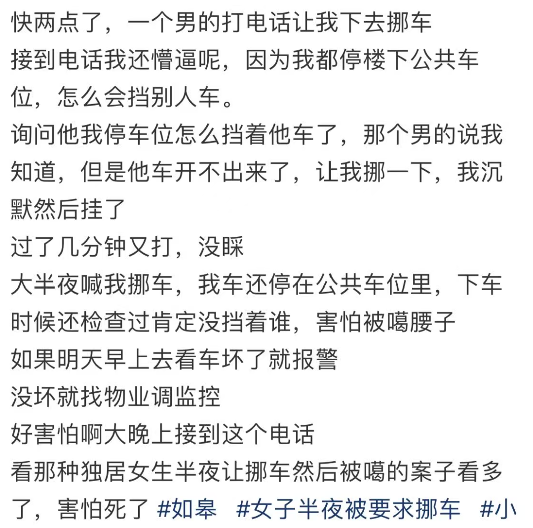 [新闻快讯] 凌晨接到男性的电话喊你下去挪车会如何选择呢? |