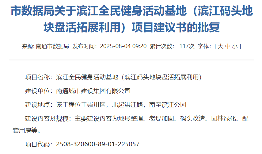 滨江全民健身活动基地(含文旅项目)足球公园段配套建筑监理招标公告 招标条件 本招标项目滨江全民健身活动基地及配套设施建设项目(滨江码头地块盘活拓展利用)项目已由相关部门批准建设,招标人为南通城市建设集团有限公司,建设资金来自自筹,项目出资比例为100% 。项目已具备招标条件,现对该项目的监理进行公开招标。 项目概况与招标范围 建设地点:足球公园段北至崇川路,南至滨江公园,东至揽江路,西临长江。 工程规模:总占地面积约14.49公顷(含0.87公顷码头),配套建筑红线长约95m,宽约70m。建筑面积约13000平方米。总投资约12000万元。 招标范围:监理招标范围为滨江全民健身活动基地(含文旅项目)足球公园段配套建筑范围内的全部相关内容前期设计、施工准备阶段、施工阶段(含装修)、竣工验收阶段和保修阶段(缺陷责任期)全过程监理工作。协助业主办理图纸审查和各项报批工作,人员考勤,对工程进行质量、进度、投资三大控制和合同管理、信息管理、安全生产管理、文明施工管理、组织协调施工现场各方关系以及工程竣工资料审核、竣工结算资料初审等。 监理服务期限:前期设计、施工准备阶段、施工阶段、竣工验收阶段和保修阶段(缺陷责任期为2年)。施工阶段以实际工期为准。 监理合同估算价:约42.25万元。 标段划分:本次招标工程共分壹个标段。 其它:质量要求:合格。 南通0 |