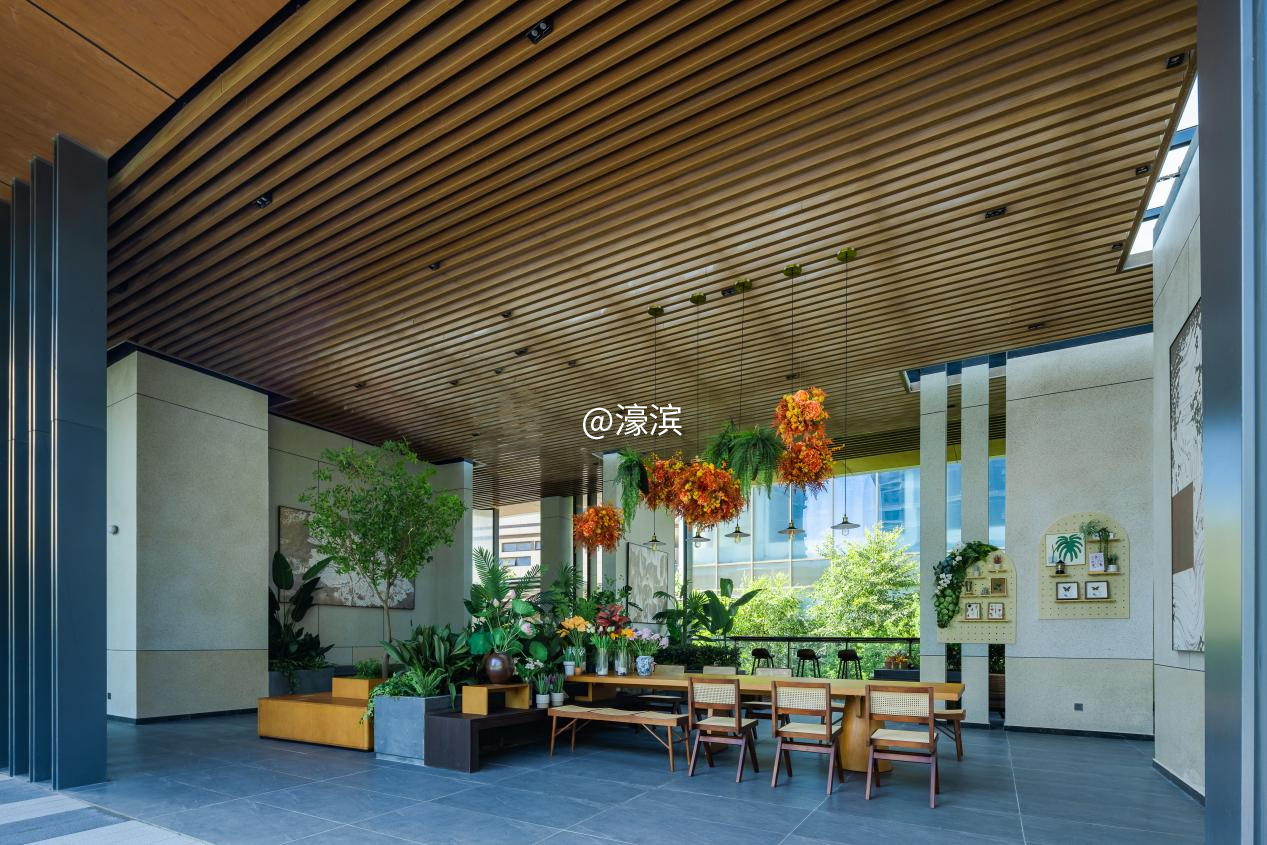 ∆万科半岛国际泓园实拍图 不同于以往架空层运维负担大、使用率低,「植物充电站」融入自然生机,让架空层不仅是室内外的过渡空间,更成为邻里交流的情感客厅。在这里,好友欢聚举办生日会,邻居相约参与手作、沙龙等活动,实现温暖的社群链接。