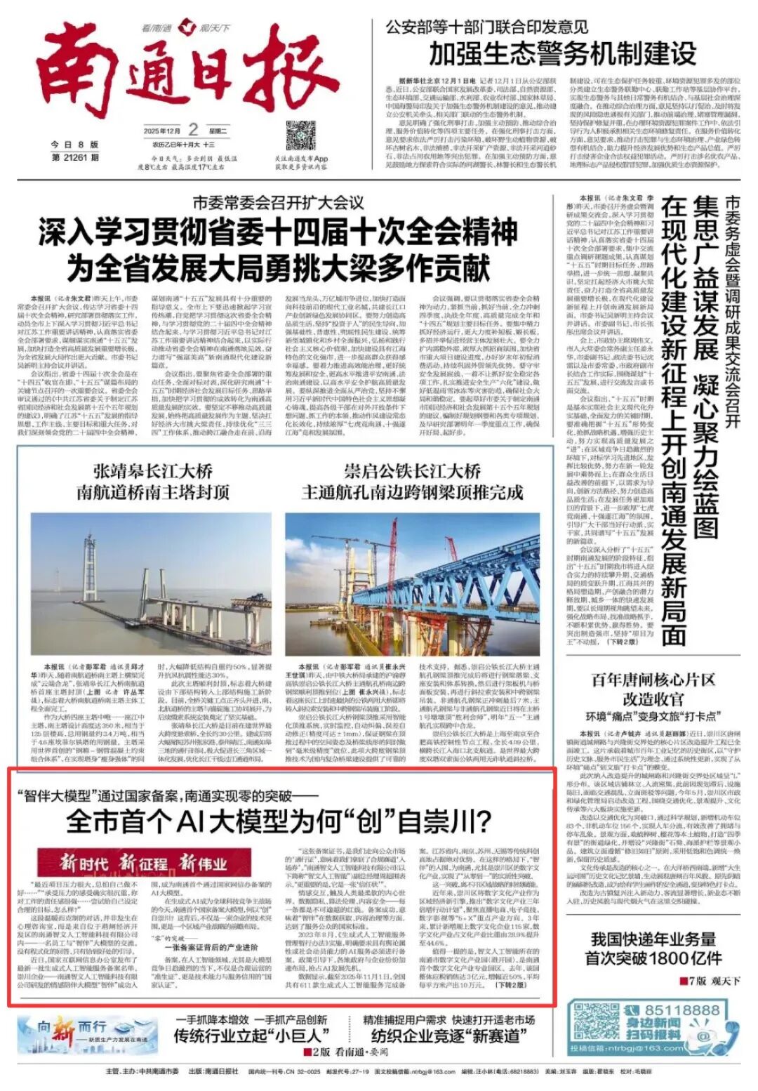 南通首个国家备案大模型花落崇川并非偶然,而是一场区域战略与企业创新之间的“双向奔赴”。