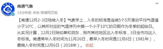 [新闻快讯] 刚刚官宣!南通入冬! |